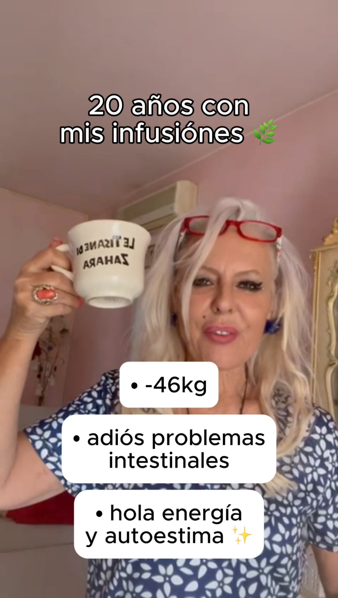 È stata introdotta alle tisane dal suo medico dopo aver sofferto di problemi alla tiroide e pressione alta. È passata da 98 kg a 64 kg e dice che non vi rinuncerà mai.